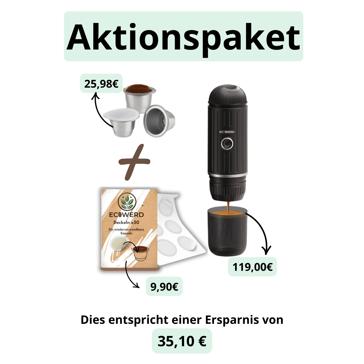 Pack : Tragbare Kaffeemaschine + Wiederverwendbare Kaffeekapsel +Deckeln